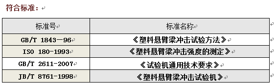 用已知能量的擺錘一次沖擊支撐成垂直懸臂梁的試樣,測量試樣破壞時所吸收的能量,沖擊線到試樣夾具為固定距離,對于缺口試樣,沖擊線到缺口 線為固定距離。試驗機應為擺錘式,并由擺錘、試樣支座、能量指示機構和機體等主要構件組成,能示試樣破壞過程中所吸收的沖擊能量。